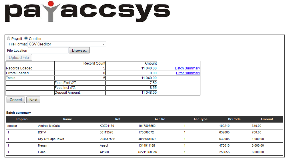 5. " Payaccsys will process the file